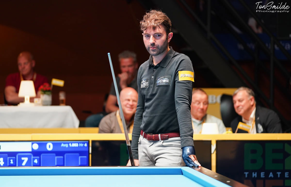 SITTARD – De top van het Nederlandse driebanden gaat vandaag, zaterdag, de finalefase in van de Grand Prix in Sittard, Limburg. De plaatsing voor de Masters staat op het spel, maar ook de prestigestrijd tussen spelers als Dick Jaspers, Jeffrey Jorissen, Jean Paul de Bruijn, Glenn Hofman, Dave Christiani en andere kanshebbers voor hoge klasseringen op de ranglijst. De uitsmijter van Volkan Cetin, in de laatste voorselectie, was er vrijdagavond één van grote klasse. Op de valreep greep de Brabander de toppositie in zijn groep van vier, waarin hij Jean Paul de Bruijn in die laatste wedstrijd een glimp van zijn klasse liet zien: 40-12 werd het in 19 beurten met 2.105 gemiddeld en een bijna-slotserie van 11. Cetin speelde formidabel in die partij en staat vandaag in de eerste knock-outs tegenover Dave Christiani.